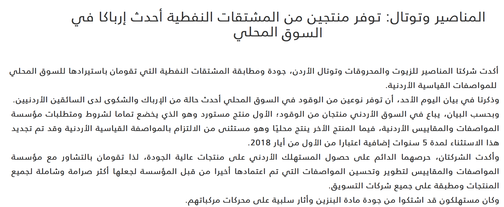 We are glad to announce that the enhanced diesel "Additives Added" is now available in our gas stations in the southern region - where this diesel is being supplied by the Jordanian Petroleum Refinery Company - Aqaba to the following Manaseer gas...